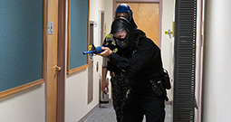 The summer training is held to ensure officers know the latest techniques and have an opportunity to practice and fine tune their skills when responding to a report of an active shooter. Officers fired simulated ammunition — similar to paint balls — from their actual duty weapons, which are fitted with special barrels so that the officers can practice working with their own weapons.