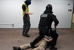 Photographer: George E. Mauzy Jr.OUPD Lt. Tim Ryan (standing left) and OUPD Ofc. Chad Touchet (standing right) take down OUPD Ofc. Michael Meek, who is portraying the active shooter in the training.