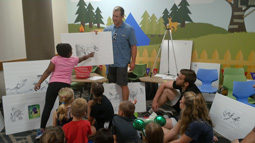 Photo courtesy of: The Patton College of EducationPatton Pals in Aunt Helen's Treehouse learn about writing and illustrating children's books with local Sequential Artist Group’s Keith Wilde.
