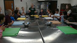 Photo courtesy of: Patton College of EducationPatton Pals integrate reading and cooking skills in the PCOE demonstration kitchen with Family and Consumer Science lecturer Lisa Diebel. Food was prepared in the kitchen and then enjoyed by campers and their families.