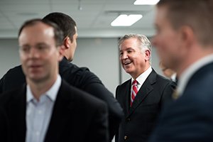 Dr. Frank Papay visits with Heritage College of Osteopathic Medicine students following a lecture he delivered Feb. 7 at the Cleveland Campus. Photo by Dustin Franz