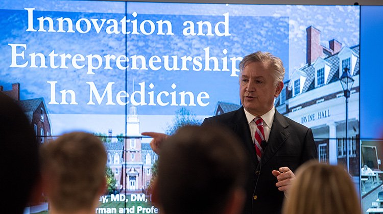 “When I was in medical school, being an entrepreneur was a four-letter word,” Papay told the crowd of approximately 50 students, along with audiences at the Athens and Dublin campuses via videoconference. “People think you need to distinguish between an entrepreneur and a doctor, and I think that’s terribly wrong. [Practicing medicine should be] a blend of innovation and entrepreneurship.”