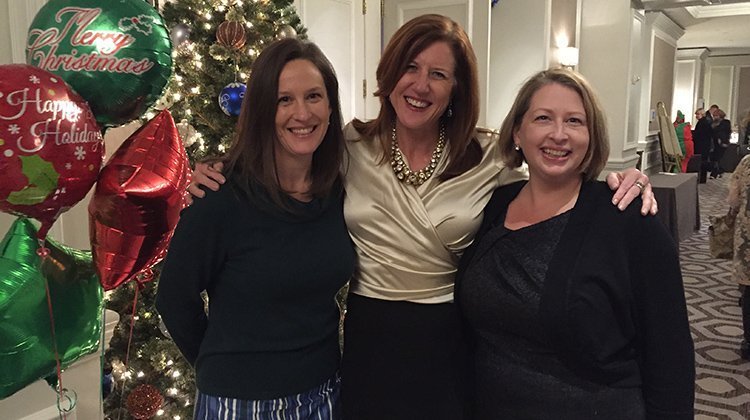 (From left) Monique (Means) McDonough, BBA and BSJ ’95, and Patty (Proebstle) Pae, BBA ’90, are pictured with Julie Green, executive director of New Futures, an organization that provides educational opportunities and pathways to financial stability to under-served young people in the Washington, D.C. region.