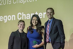 Jenna Holeman, BSJ ’17, from the Oregon Chapter is presented the 2019 Cutler Outstanding Chapter Award during the Celebration of Volunteerism. Photo by Max Catalano, BSVC ’20