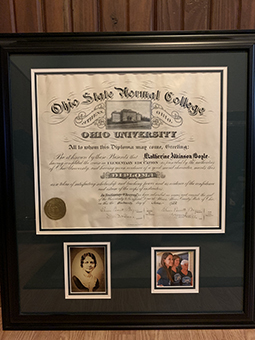 Meanwhile, Weininger’s great-grandmother, Katherine J. (Atkinson) Hossnelopp, graduated with a bachelor’s degree in education from OHIO in 1922 and was a public school teacher in Toledo and Newcomerstown, Ohio, for 36 years before retiring in 1968. She passed away in 1989.