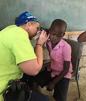 Each time Lee travels to Haiti, she visits schools in rural communities outside of the capital city, Port-au-Prince, working alongside other medical professionals to provide needed health care services. At the schools, Lee sees as many students as possible, maximizing the impact she can make as the only audiologist in the group.