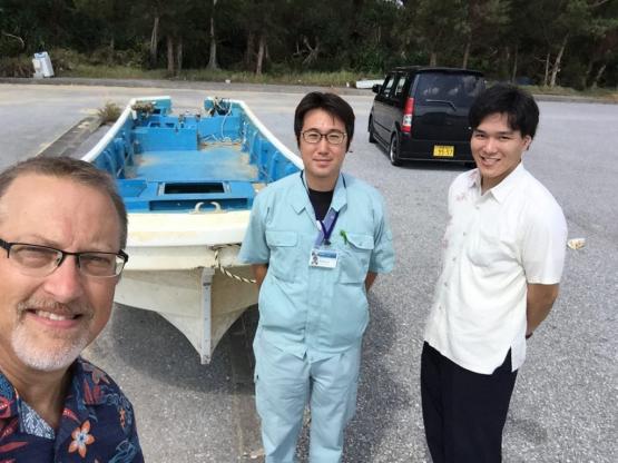 The research trip occurred this past September. At Kinjō-chō, Nakada and Thompson were able to interview local officials about the boat from Iwate. The boat was purchased by a Kinjō-chō fisherman for continued use in the industry.