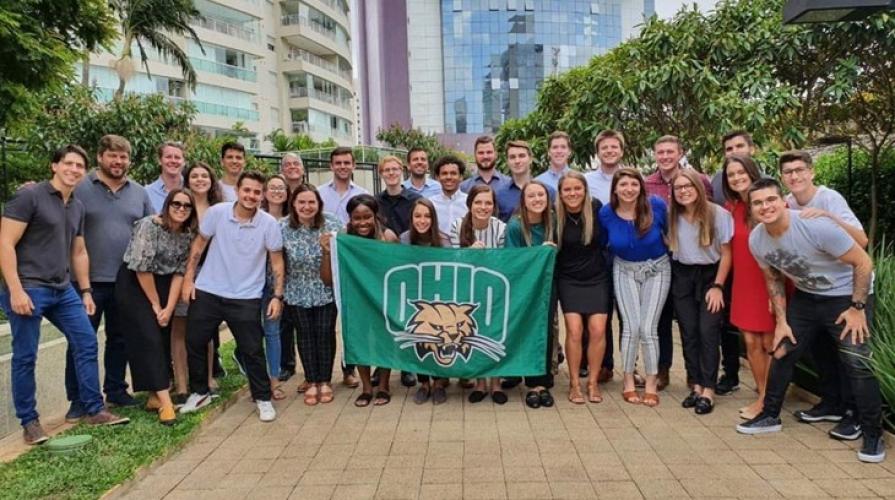 Marketing professor Colin Gabler and a group of students take time for a photo during a recent Global Consulting Program trip to Brazil in January 2020