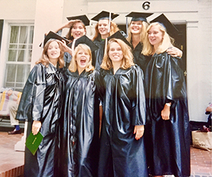 Boals met Monique their sophomore year at OHIO when Monique joined Pi Beta Phi. Boals described their friendship as a kind of “love at first sight” and said she always knew she and Monique would become lifelong friends. Before long, their friendship grew to include five other Pi Phi sisters: Carrie (Geese) Dupler, BBA ’93; Caroline (Cofer) Golon, AB ’93; Susan Moran, BBA ’93; Tiffany (Nordby) Takac, BSC ’93; and Leticia (Leinard) Weidenhamer, BSC ’93.