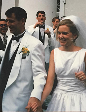 Monique Mixner, BSHSS ’93, and Mike King, BBA ’92, met each other through mutual Ohio University friends in the fall of 1993 and brought their Bobcat friends together again when they returned to Athens for their wedding.