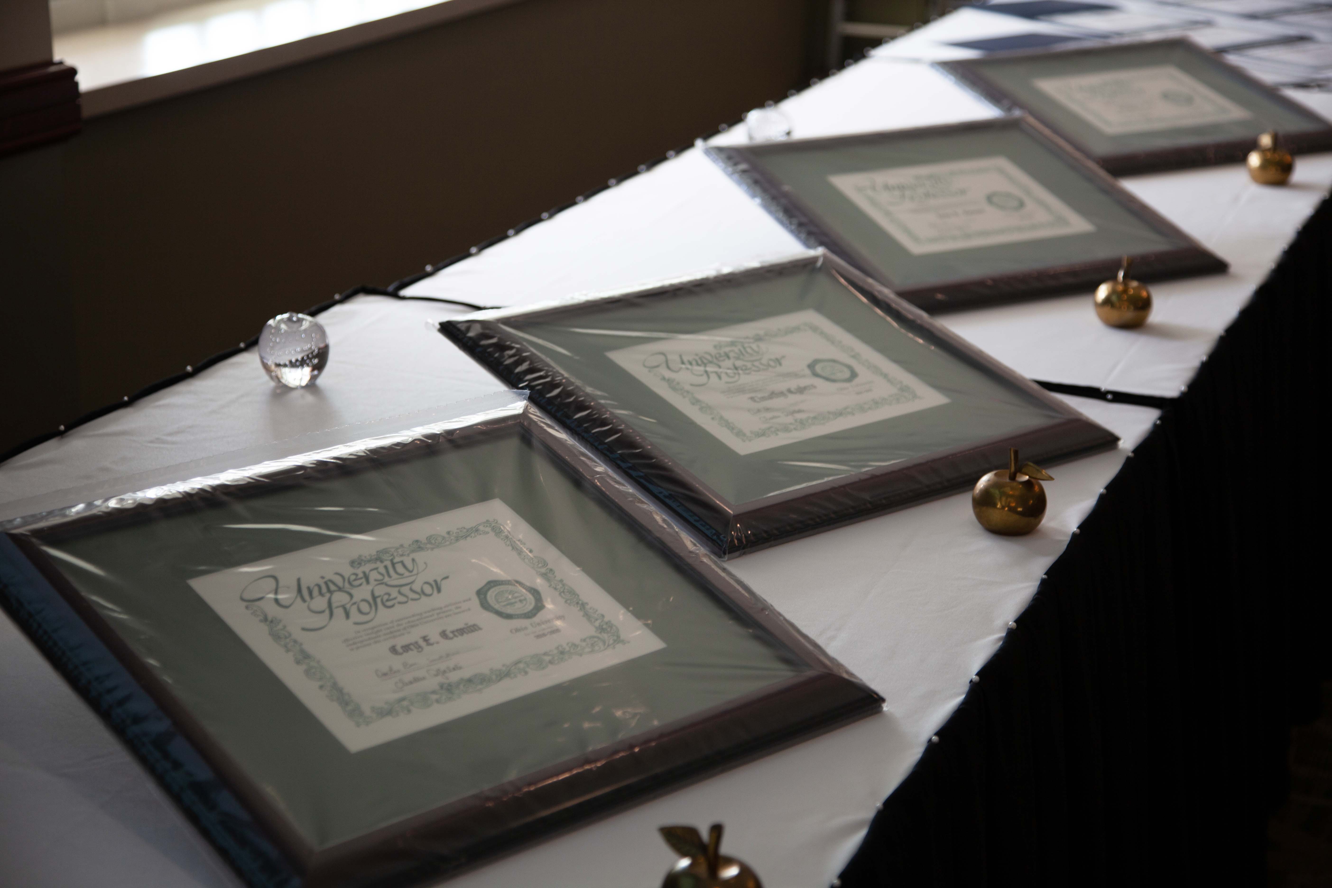 Four faculty members have received the University Professor (UP) award for the 50th annual distribution. The University Professor award recognizes outstanding teaching at Ohio University. Since its founding in 1970, the UP program has recognized over 260 professors for their teaching excellence.