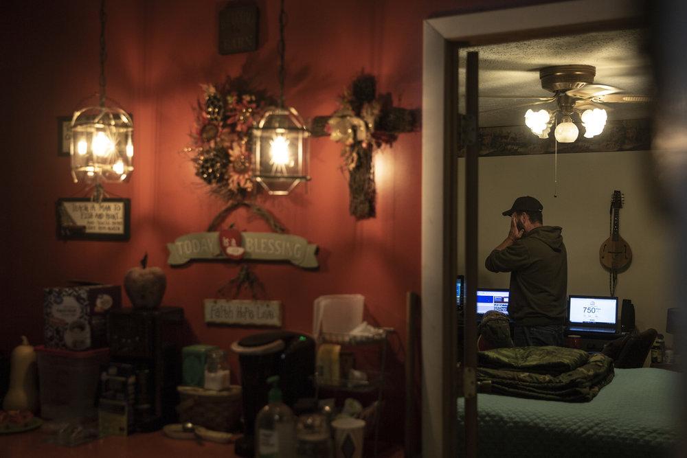 Mr. Warmke conducts a business call while the internet runs slowly in his home.