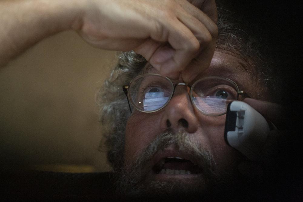 Greg Hall reacts as his internet connection fails 20 minutes before he's supposed to closedcaption a live broadcast TV program.