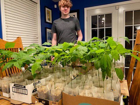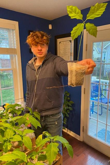 Sam Gutekanst, the Athens High School sophomore who donated the saplings, collected the acorns from OHIO’s College Green and raised the saplings at his home in Athens.