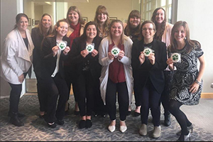 Alumna Lyndale (Allison) Reisinger, BSC ’09, MA’ 12, (pictured front row, far right) poses for a photo with several of the Ohio University Lancaster students she interacted with during a “Bobcat to Bobcat” networking session. Photo courtesy of Lyndale Reisinger
