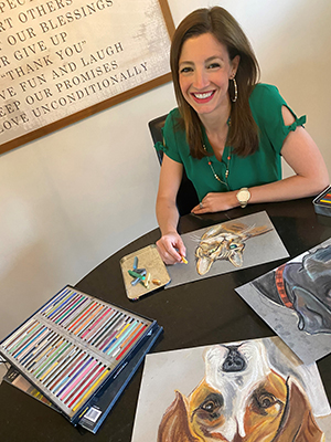In an eight-day period, Ohio University graduate Lyndale (Allison) Reisinger, BSC ’09, MA’ 12, raised more than $3,500 for the Mid-Ohio Foodbank by drawing more than 20 portraits of people’s pets. Photo courtesy of Lyndale Reisinger