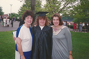 Ann Gynn, BSJ ’93, is pictured outside of the Convocation Center at Commencement in June 1993.