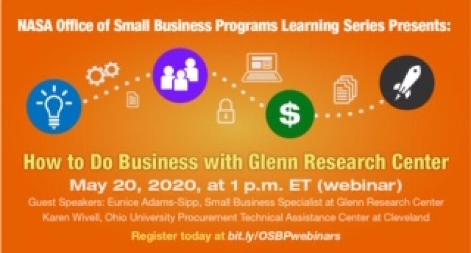 NASA Office of Small Business Programs (OSBP) and Ohio University Procurement Technical Assistance Center (OHIO PTAC) at the Voinovich School of Leadership and Public Affairs are partnering to offer a free national webinar, “How to do Business with NASA Glenn Research Center,” at 1 p.m. Wednesday, May 20.