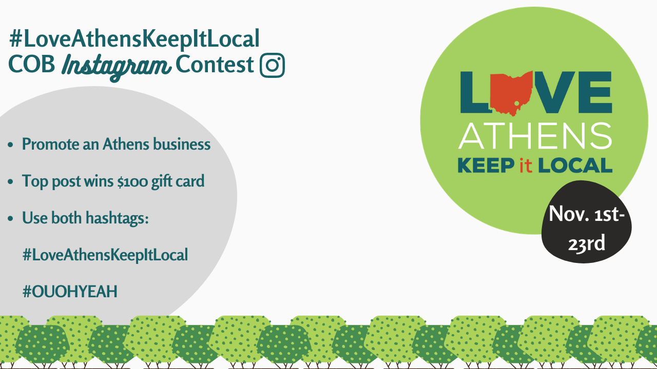 Ohio University’s College of Business is encouraging students to support local businesses through a new Instagram contest, #LoveAthensKeepItLocal. The contest is open to any student. It began Sunday, Nov. 1, and runs through Monday, Nov. 23.