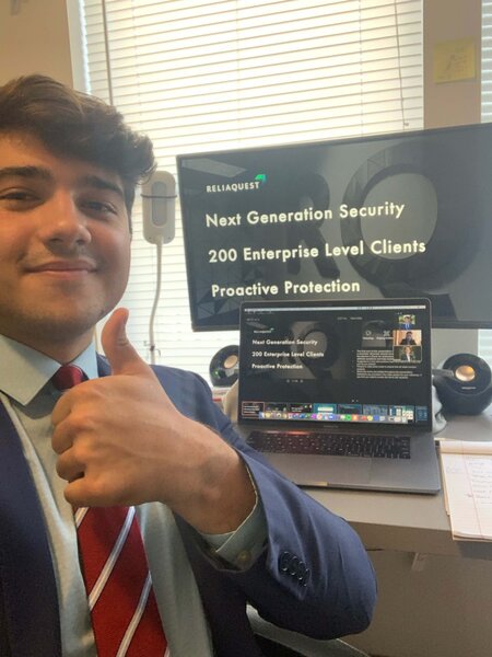 The event put Brezina and Gilliand in the role of sales consultant at ReliaQuest. They were tasked with selling a cyber security provider to a large financial institution that was experiencing serious cyber-attacks. Each round of the competition, they would sell to another decision maker in the process, ultimately getting a final meeting with the CEO and CISO.