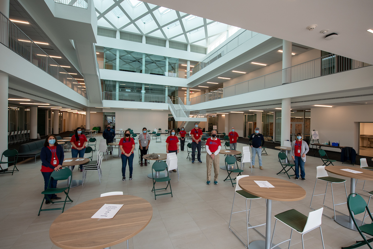 “We looked at several sites as places to distribute the vaccine, but when Dr. Johnson offered the new Heritage Hall, we knew this was the most efficient space to make the vaccine accessible while keeping people safe,” Gaskell added. “With new vaccines such as this, you must provide an observation room where people can wait for at least 15 minutes to make sure there are no reactions. The large, open space in Heritage Hall is the perfect place to allow for 50 people to safely keep their distance while being observed, something that will be even more helpful when we are supplied more doses of the vaccine and can vaccinate hundreds more people.”