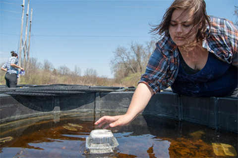 "Invasive species are unfortunately pervasive across our landscape. One in particular that has made its way into Ohio is the Hemlock Wooly Adelgid, which has killed millions of Eastern Hemlocks across North America. The most common practice to combat this invasive is through the use of a neonicotinoid pesticide called Imidacloprid, which is often sprayed around the base of infected trees, leading to runoff into nearby bodies of water, where amphibians may be breeding,” she said about her research topic.