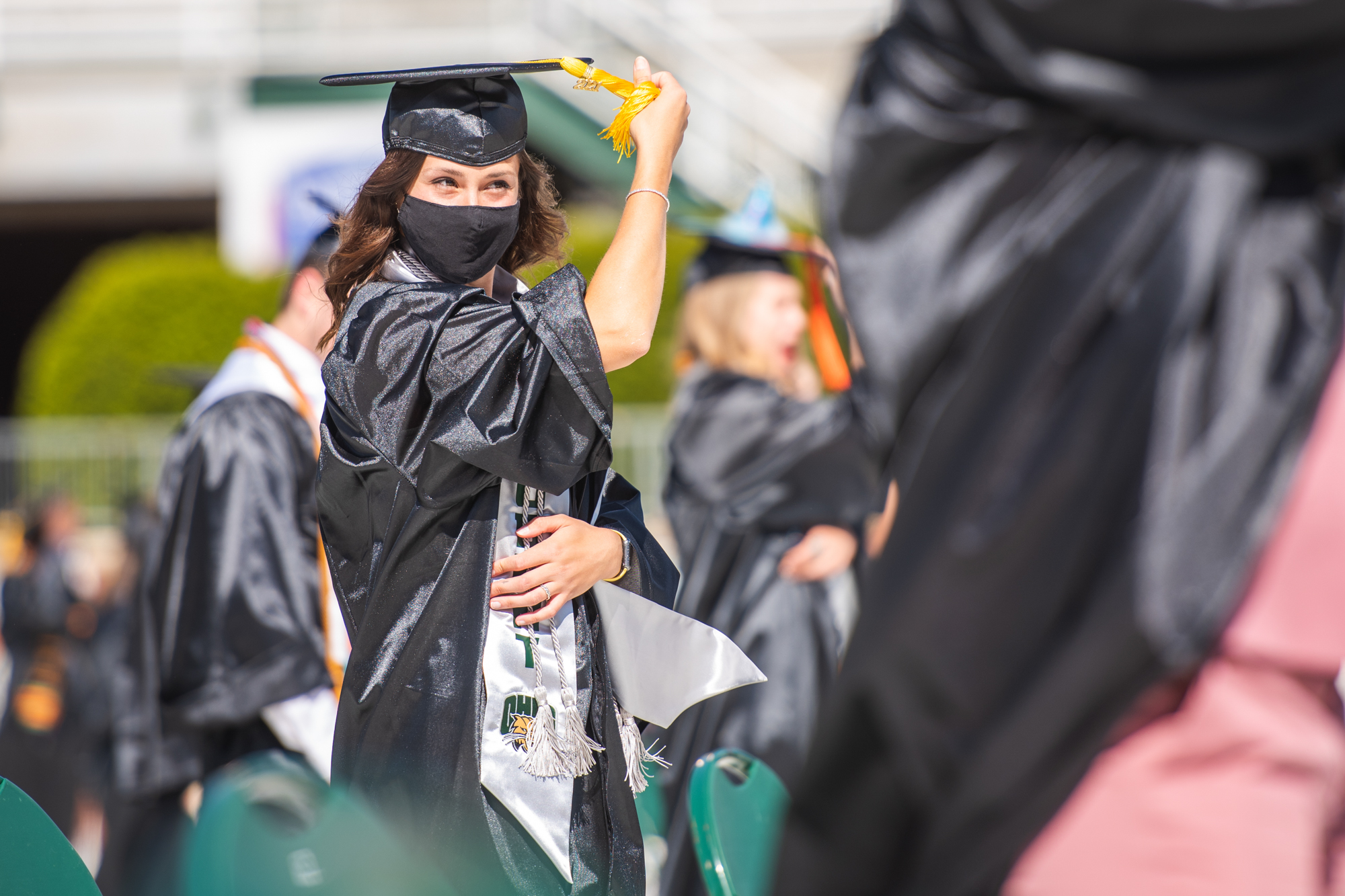 Claire Buckey moves her tassel from right to left during at spring commencement.