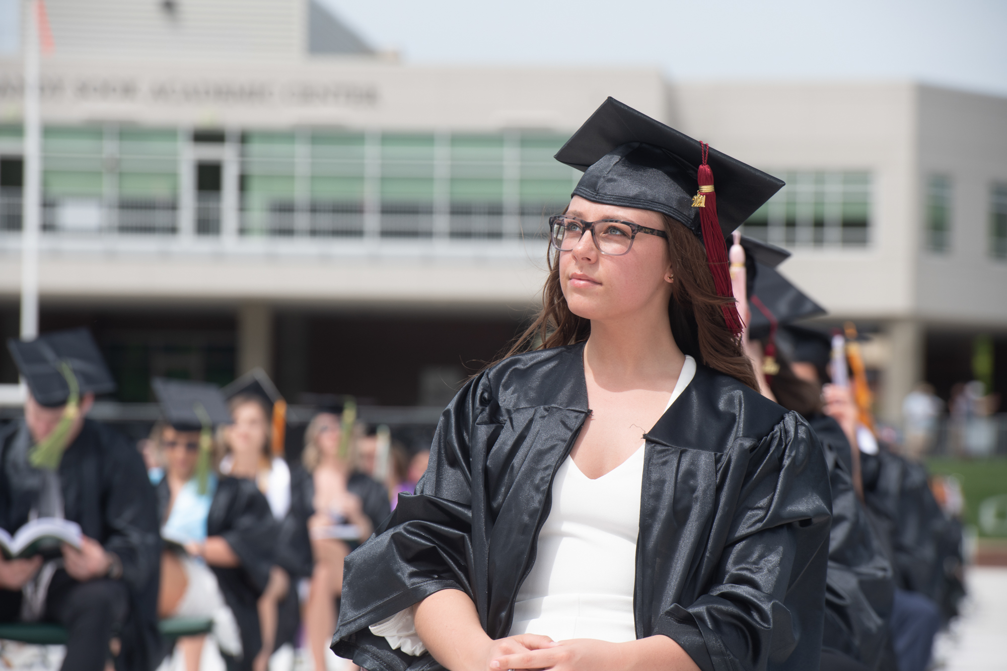 Abigail Rudd listens to the commencement address.