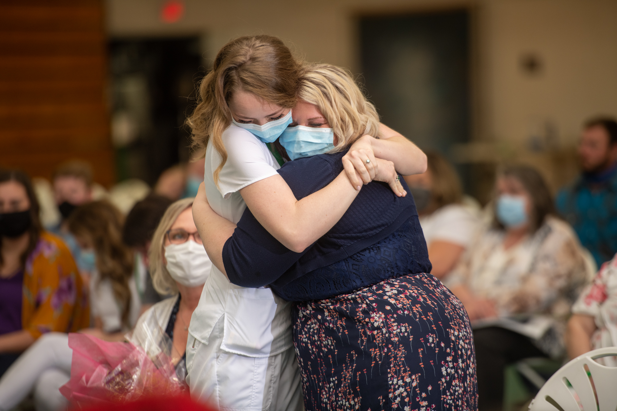 Elizabeth Dombrowski (left) hugs a supporter at the Ohio University Chillicothe Recognition Ceremony for Nursing Graduates.