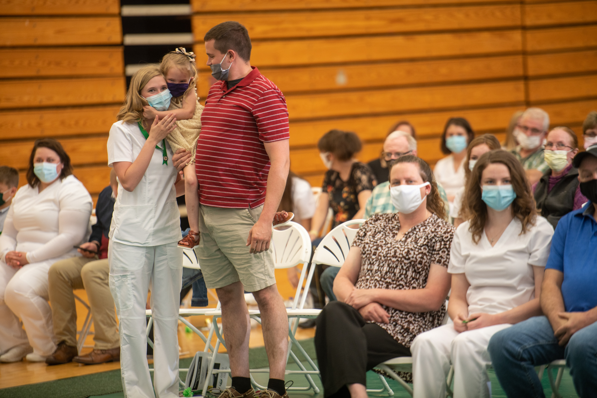 Bailey Barnes (left) gets a hug from her three year old, Emmaline, during Ohio University Chillicothe Recognition Ceremony for Nursing Graduates.