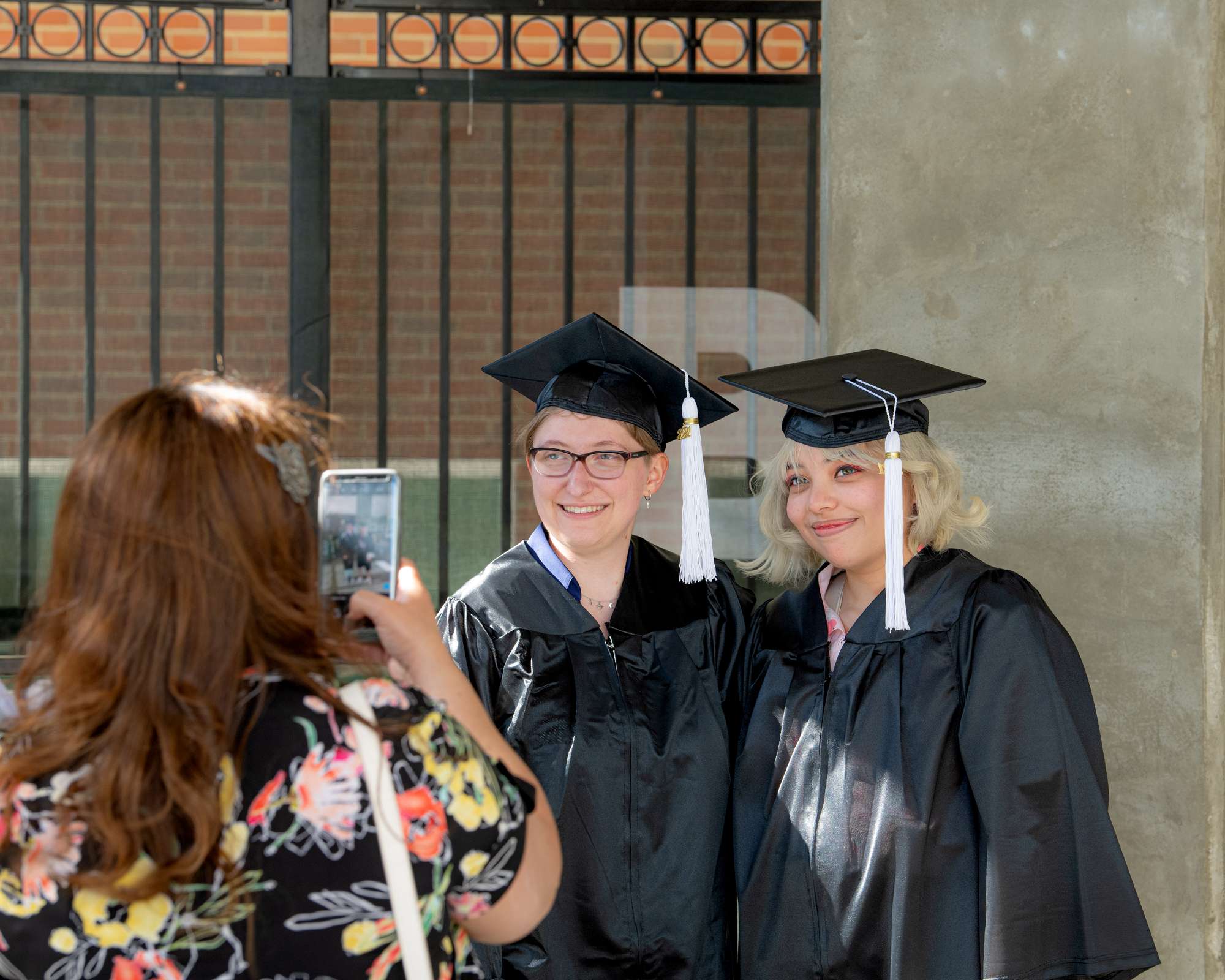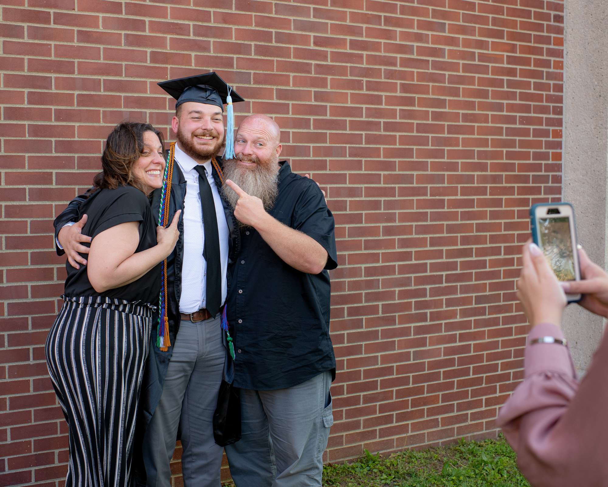 New graduates pose for a photo following spring commencement.
