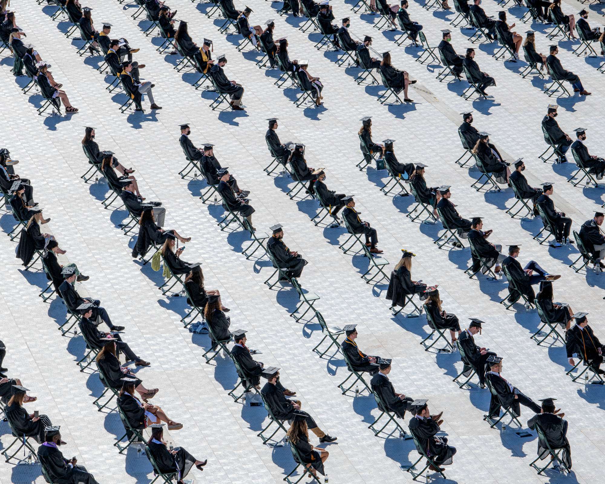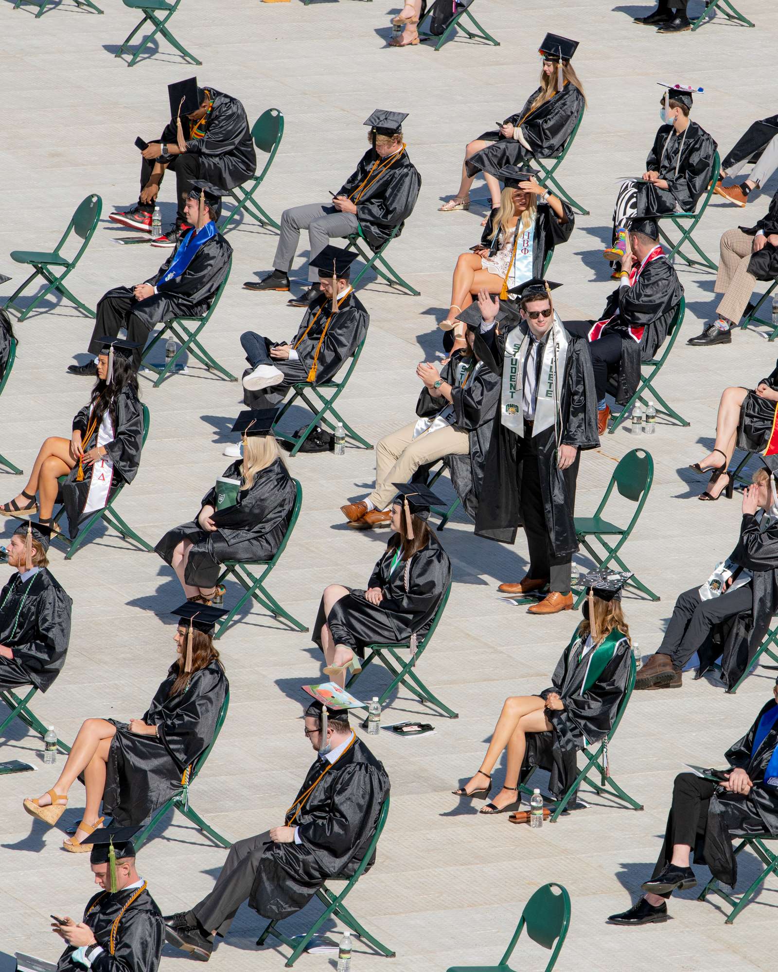 Graduates were seated six feet apart on the football field at Peden Stadium.