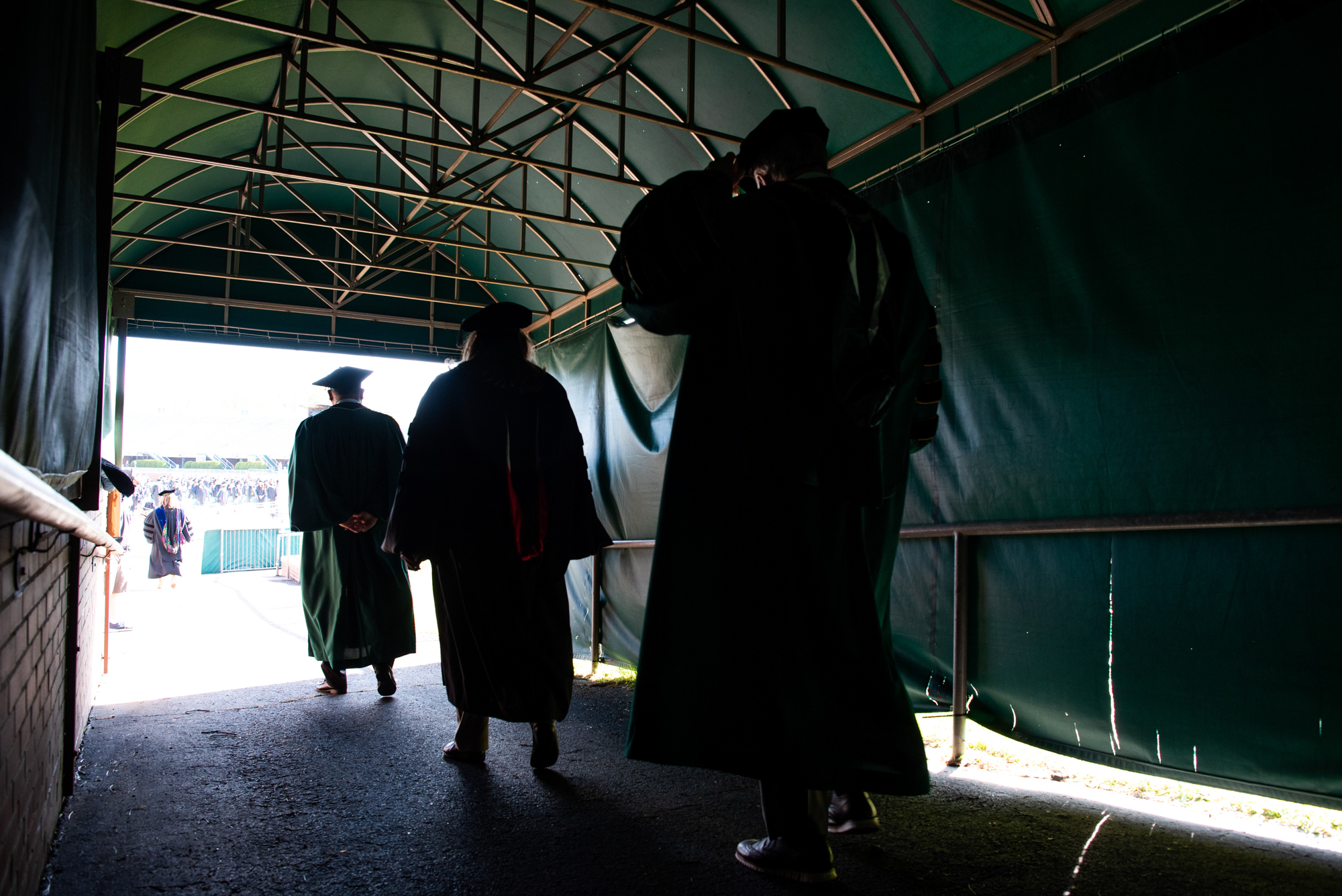 The processional enters Peden Stadium for spring commencement.