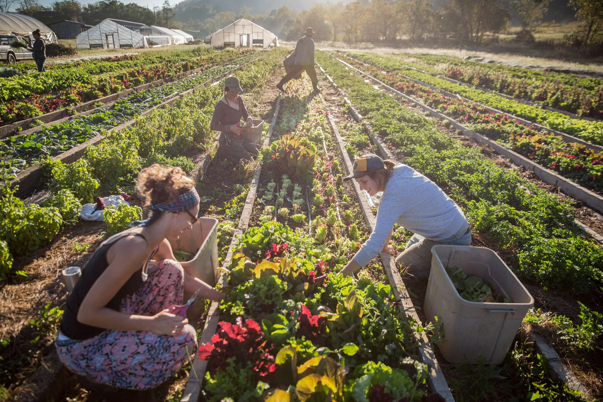 Photographs of employees harvesting produce at Green Edge Gardens in Amesville, Ohio on October 7, 2016.