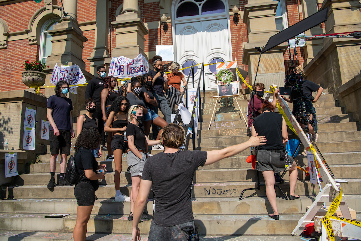 Crews recorded multiple scenarios in different locations, including at Stuart’s Opera House in Nelsonville and near the graffiti wall in Athens.