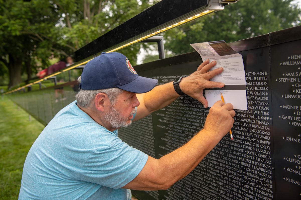 Volunteer Scott Moody said some of his high school classmates are on the Wall. He volunteered because he thinks it is important to recognize those who served in the war.