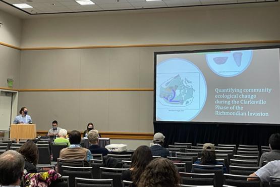 Forsythe presented his work with Stigall on "Biotic response to the Clarksville phase of the Richmondian Invasion: a synecological perspective."