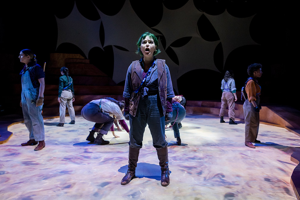 Throughout the production, students worked alongside actors from the Actors’ Equity Association. Jessica Ranville, an equity actor who played the character Powell, the one-armed captain who led the expedition, said the Men on Boats production was the first time she had worked in collaboration with students.