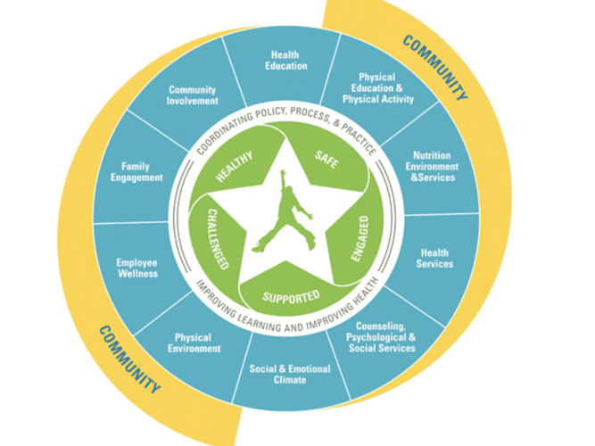 The WSCC model is the CDC’S framework for addressing health in schools. It emphasizes the importance of the community in supporting the school, the connections between health and academic achievement and the importance of evidence-based school policies and practices. In the model, the school is seen as a community hub that informs families and communities of different ways to keep children healthy and safe.