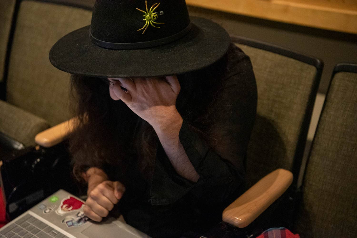Assistant Director Maya Watson holds her head in her hands. Despite her coaxing to stay on schedule, the team has inevitably gotten behind on their shotlist. Although this is a natural part of filming, it is undeniably stressful.