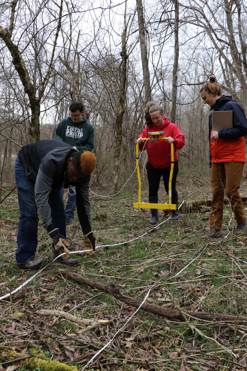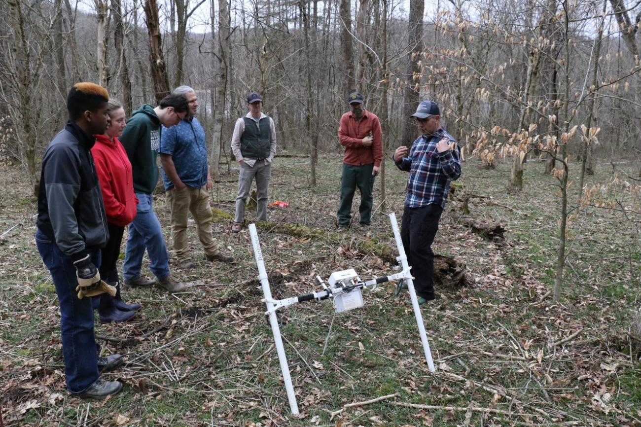 In late March, a research team of archaeologists led by Cory Crawford, Ph.D., (Ohio University), Joe Gingerich, Ph.D., (Ohio University), and Andrew Tremayne, Ph.D., (Wayne National Forest) collaborated with geophysical archaeologist Jason Herrmann, Ph.D., (University of Pennsylvania) to use geophysical equipment to map historic settlements in the Wayne National Forest, where Payne’s Crossing is located.