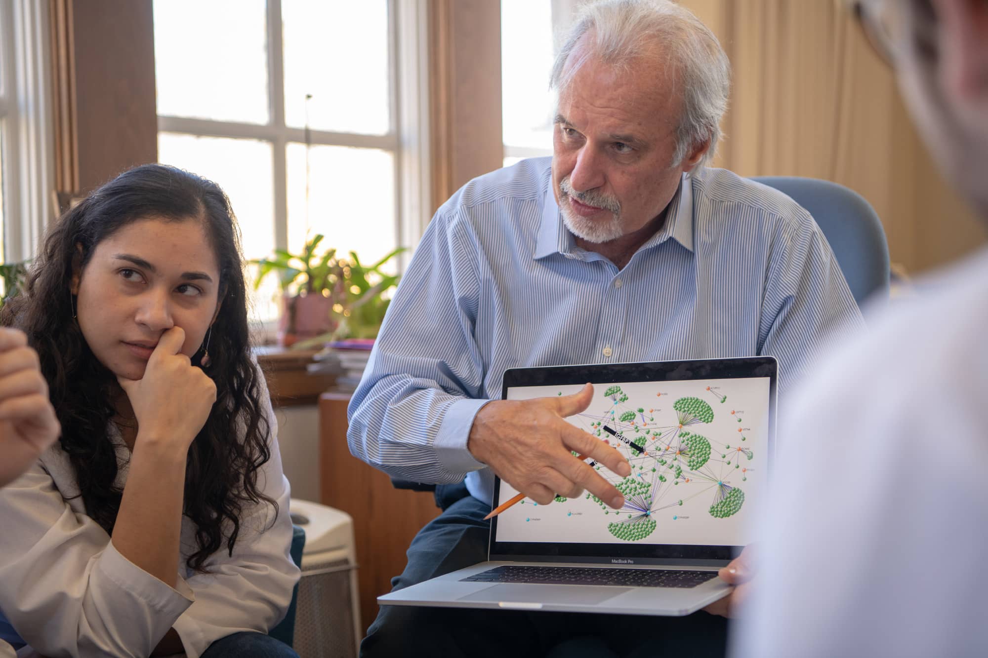 Dr. John Kopchick reviews data with his team at the Edison Biotechnology Institute.
