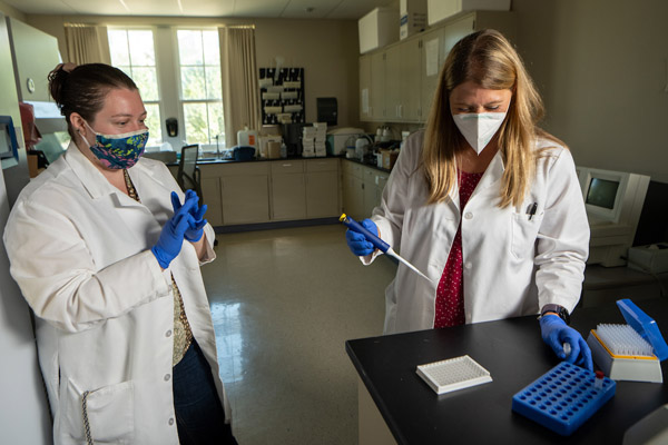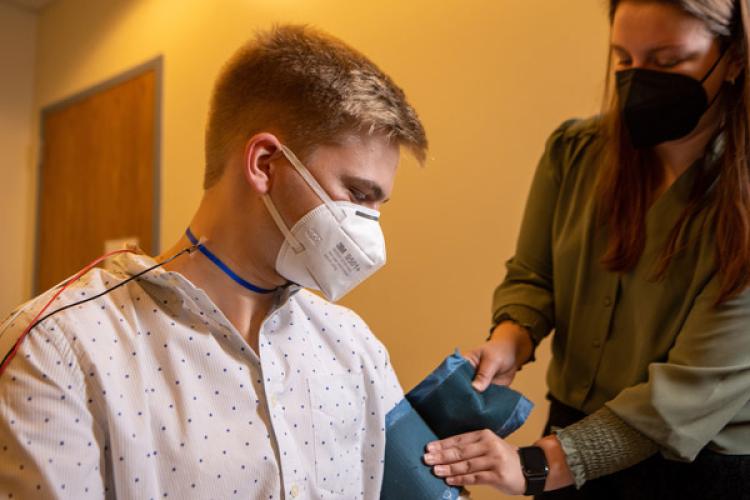 Peters and Zoccola share two experimental laboratories—the Laboratory for Biological Specimens and a Psychophysiology Training Laboratory—adjacent to their own research laboratories in Porter Hall. Their lab equipment includes medical equipment and software that allows the researchers to gather data on blood pressure, electrocardiography, and respiration.