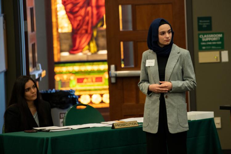 Two members of OHIO’s Mock Trial Team, sophomores Taylor Schneider and Riley Sargent, not only shared their expertise with the high school students but also were able to gain leadership experience as program assistants, aiding students in case construction and courtroom maneuvers.