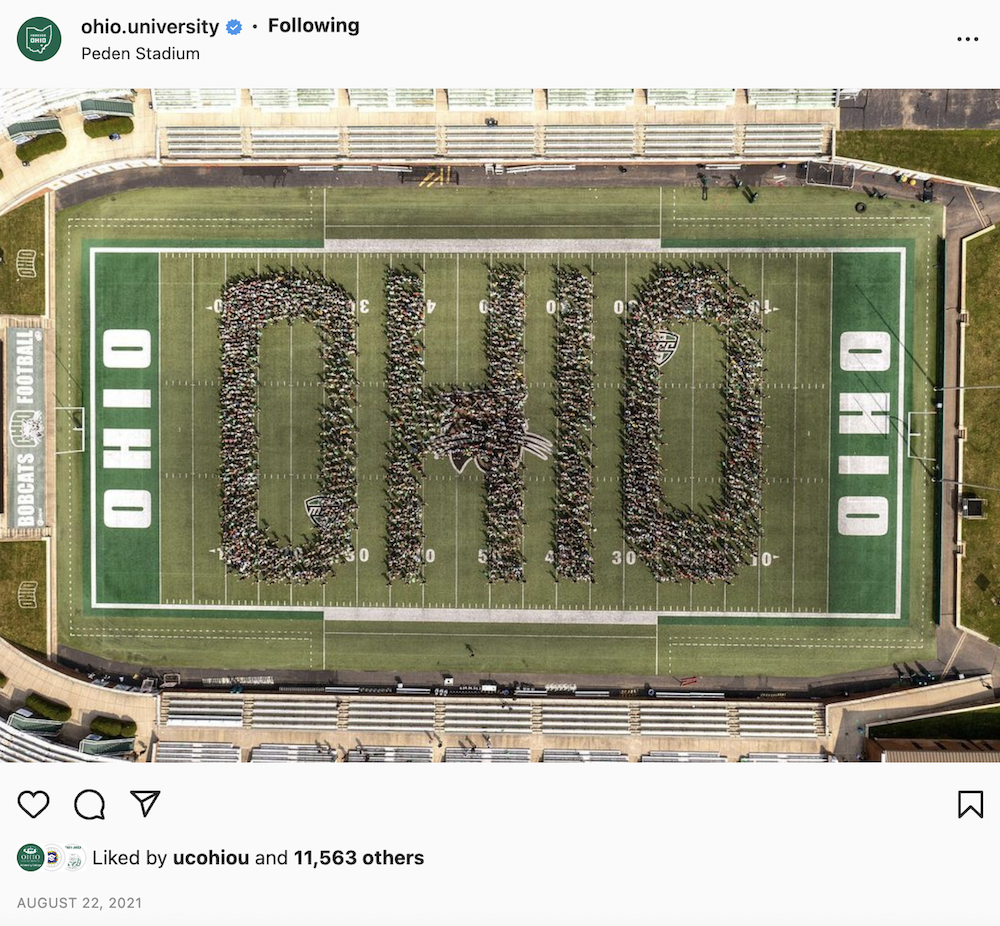 Rival IQ surveyed 358 Division I colleges and universities between June 1, 2021, and May 31, 2022. According to the report, “aerial shots and classic views of Ohio University’s iconic Athens campus and surroundings brought about tons of nostalgia-themed engagements” helped OHIO secure the overall fifth place.