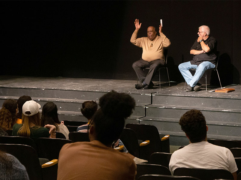 Ohio University School of Theater Alumnus Dale Shields, BFA ’75, MFA ’95, met with current theater students at a lunchbag event held during OHIO’s Black Alumni Reunion weekend Sept. 15-18. Shields received the 2022 Ebony Bobcat Legend Award in recognition of his long and successful career as a performer, educator and director.