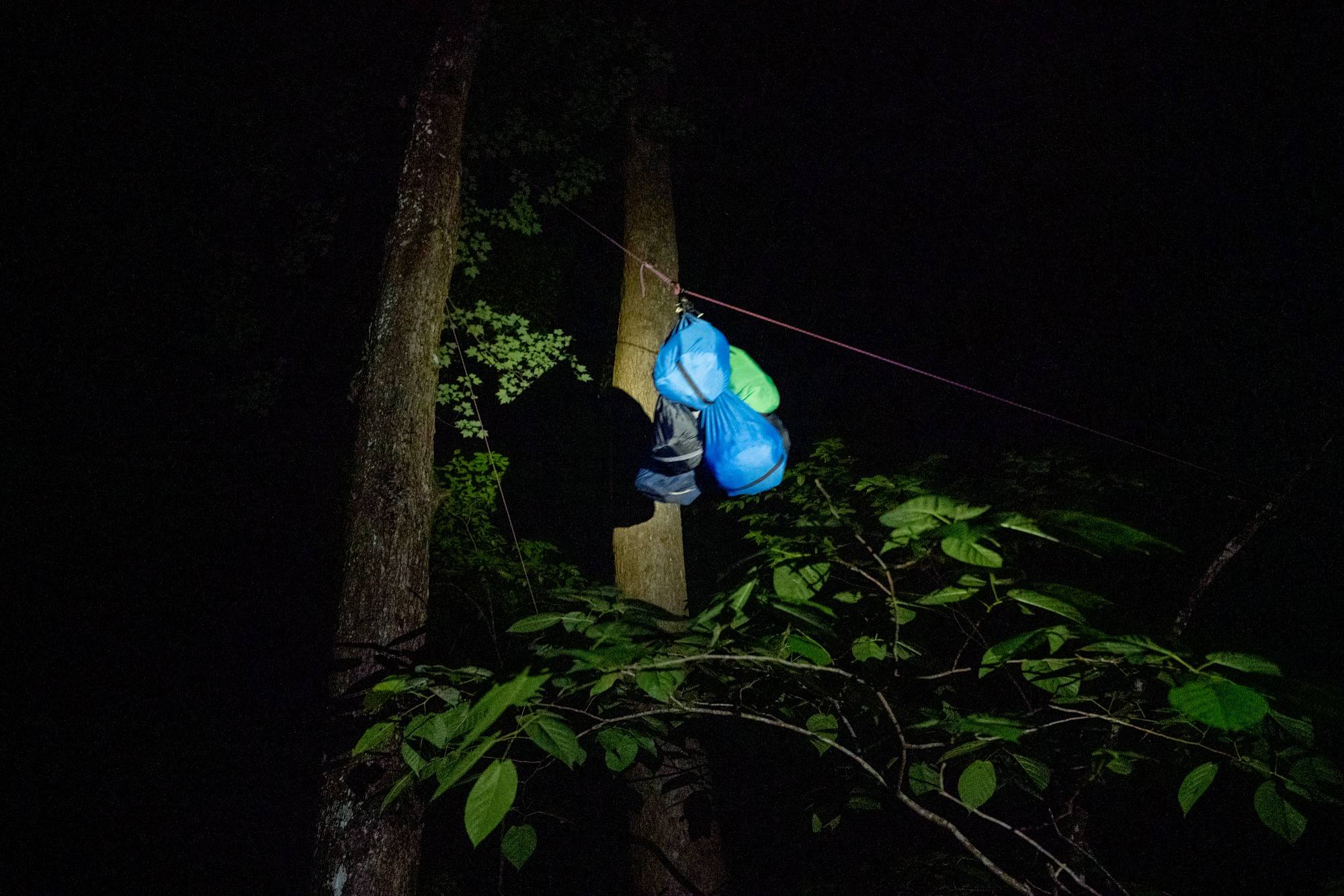 Every night students had to hang their food and anything else that might attract bears at least ten feet off of the group, at a location away from camp.