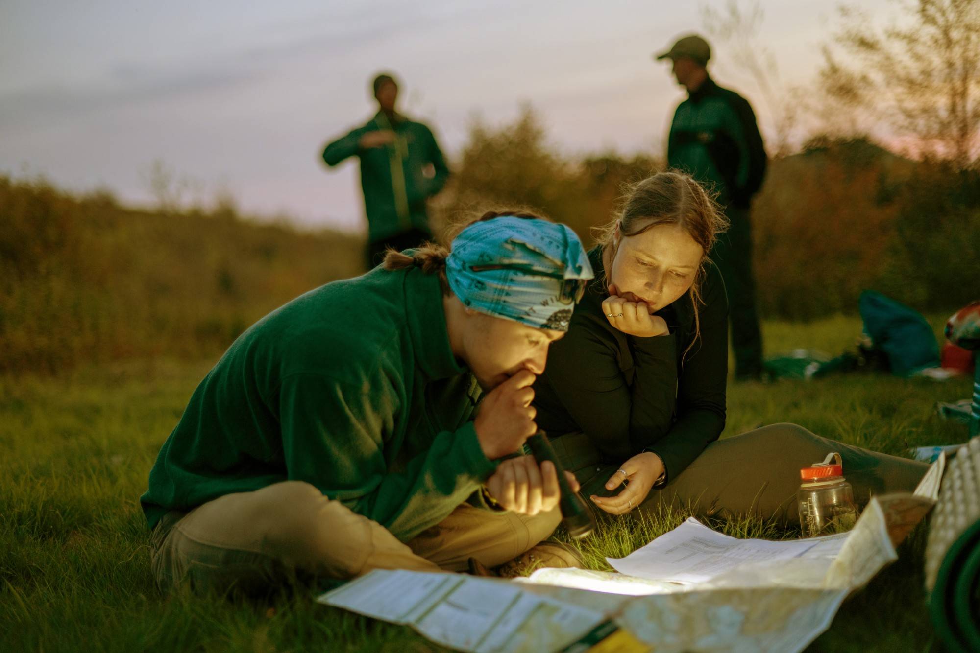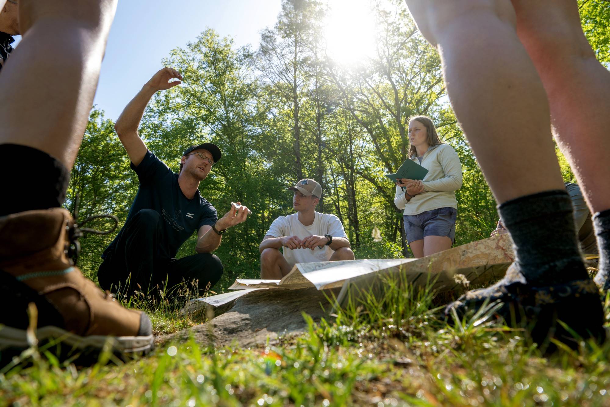 Kevin Osborne leads a navigation lesson at the start of the backpacking portion of the class.