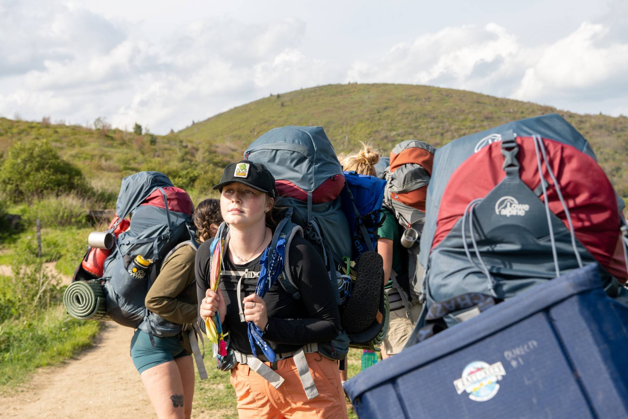 Anna Hattemer prepares to hike the next section of the backpacking trip.