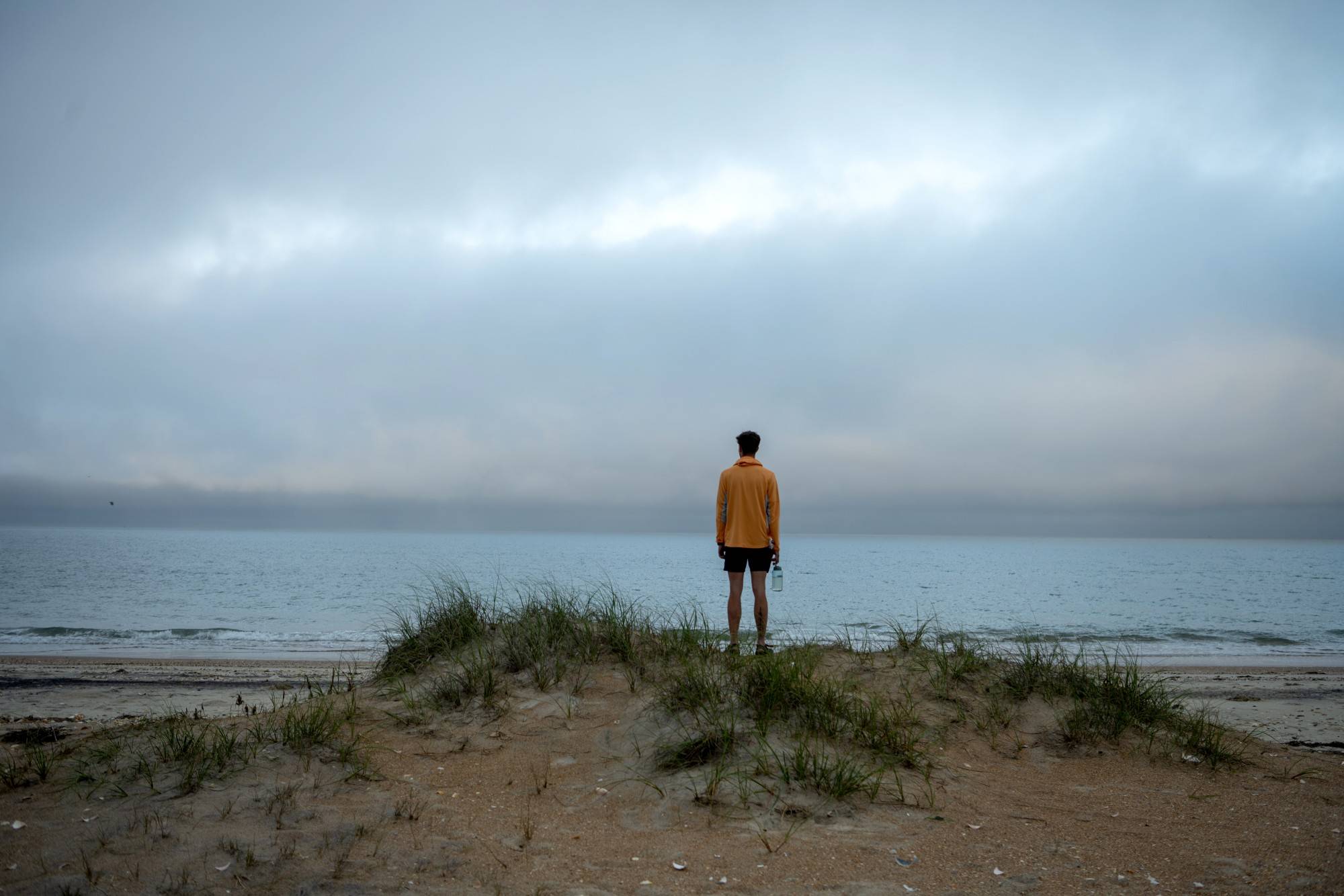 Andrew Lewis takes in the ocean view at sunset shortly after arriving in the Outer Banks for the second portion of the outdoor leadership course.